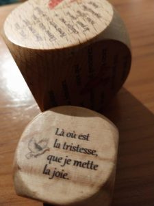 Joyeusement. Elle sait être intérieure aussi. Quand même. Je peux prier joyeusement, cuisiner joyeusement, marcher en silence joyeusement. Je peux écrire joyeusement. C’est ce qui m’arrive chaque soir avec ce calendrier de l’Avent. En vrai. C’est tout bête cette petite joie et ça fait du bien.